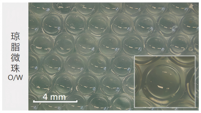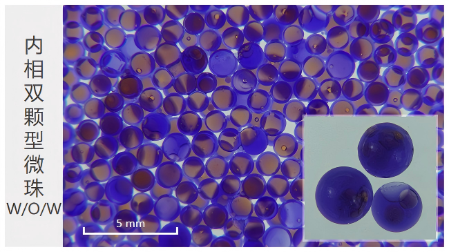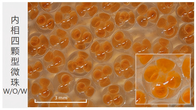 应用场景(W/O/W、O/W/O):内相多颗型微珠、内相单颗型微珠、单层油珠